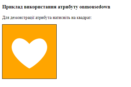 Подія onmousedown відбувається, коли користувач клацає лівою чи середньою кнопкою миші по елементу.