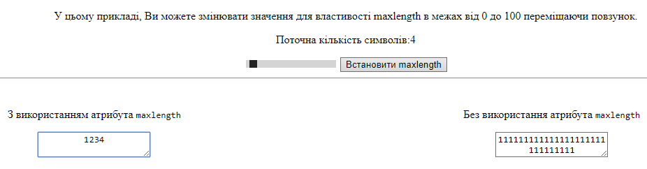 Найпростіший приклад використання HTML атрибута maxlength теґа <textarea>